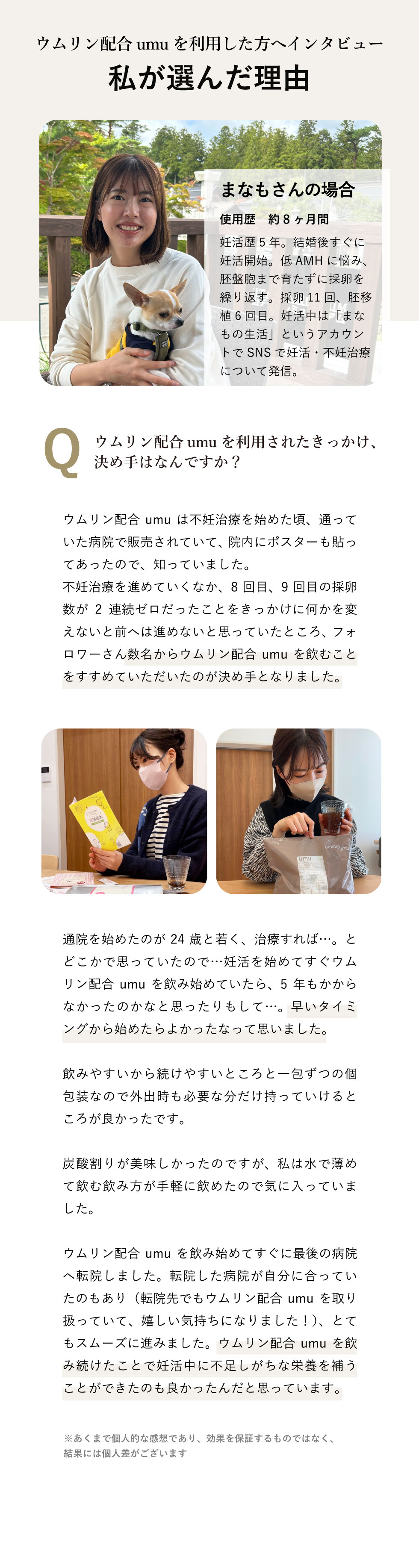※ウムリン配合umu入門・葉酸セットご購入の方で、万一商品(ウムリン配合umuのみ)が合わなかった場合は、初回商品のみ商品到着後30日以内であれば商品代金を返金させていただきます。(付録の1スティックを除き、15スティック以上使用された場合は対象外)返品商品を確認次第、返金のお手続きをさせていただきます。返品の際の送料はお客様にご負担いただいております。
